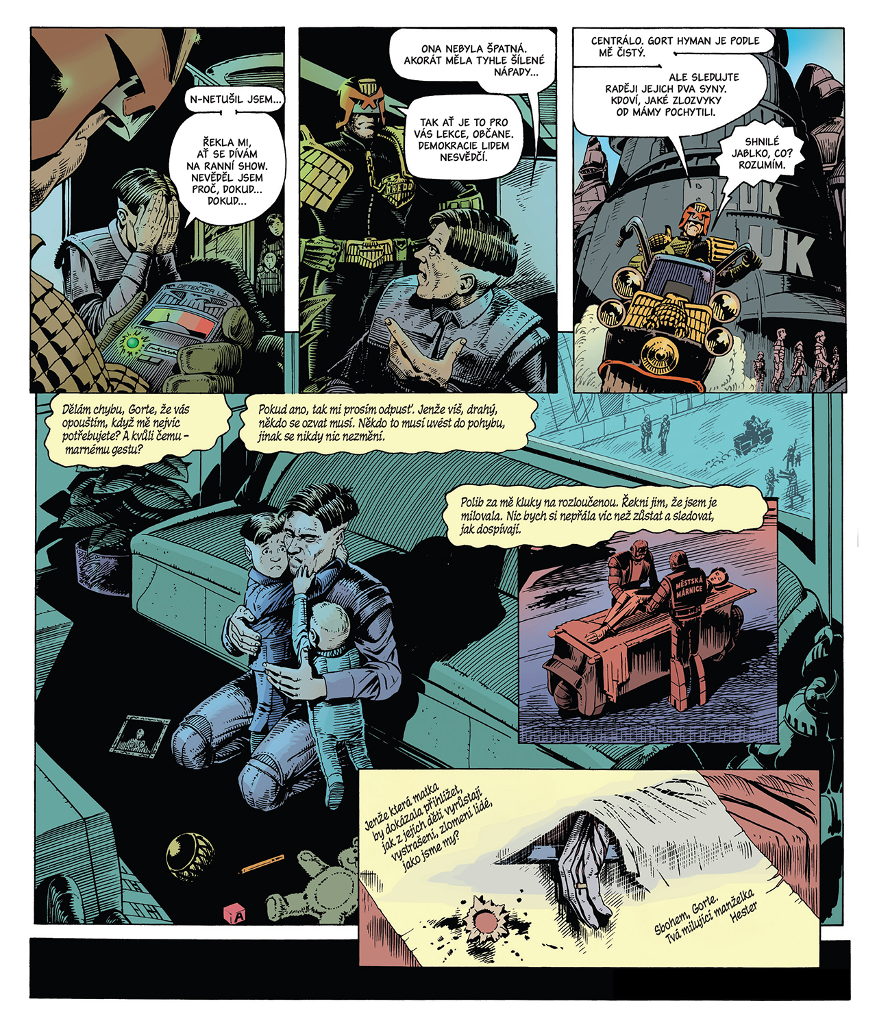 Amerika, temný a komplexní příběh napsaný Dreddovým spolutvůrcem Johnem Wagnerem a namalovaný Colinem MacNeilem, je považována za jeden z nejdůležitějších komiksů se soudcem Dreddem. V této knize ji doplňují tematicky související krátké příběhy napsané Alanem Grantem (Lobo, Batman) a Garthem Ennisem (Preacher, Banda) a nakreslené Johnem Higginsem (Před Strážci).