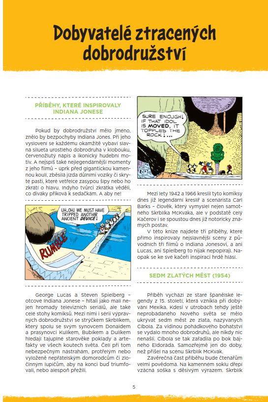 Úprk před obří kamennou koulí, zběsilou jízdu důlními vozíky či smrtící nástrahy v chodbách dávno ztracených chrámů neomylně spojuje jméno Indiany Jonese. Slavný archeolog v klobouku však pouze kráčí v kačeřích stopách. Tohle všechno už totiž dávno před ním zakusili Strýček Skrblík, kačer Donald a jejich synovci Kulík, Bubík a Dulík.
