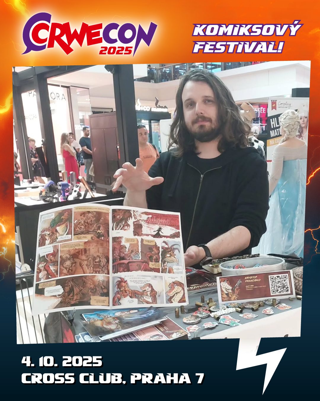 📍 Na CRWECONU ho najdete v Kreslířské aleji v prvním patře. Bude možné nechat si podepsat komiksy, ale zakoupit jeho komiksy, printy či originální kresby.