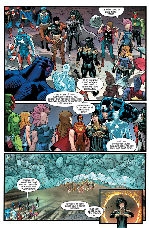 První část bitvy Avengeři obdivuhodně ustáli. Budou jim však stačit síly i na to, aby pokořili armády Mephistů a Doomů? A o co ti dva vlastně doopravdy usilují? Hráz, která dělí veškerenstvo od nevratné zkázy, se ztenčuje a Avengers budou muset do boje nasadit ty největší kanóny i ty nejdrobnější členy, aby získali rozhodující výhodu a zachránili celý mnohovesmír!