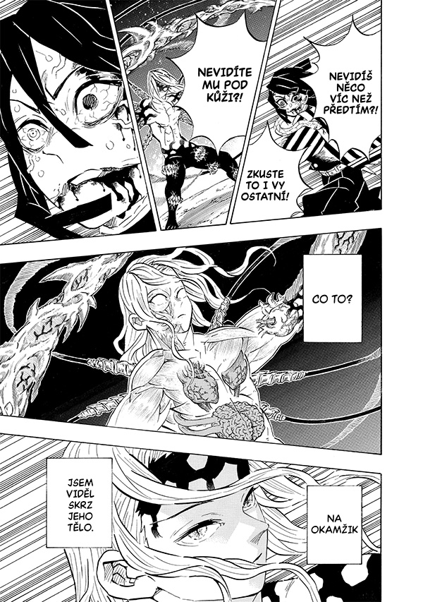 Do úsvitu zbývá ještě víc než hodina a Muzan útočí pořád zuřivěji a zuřivěji. Zvládnou ho zbývající Pilíře s pomocí ostatních lovců porazit? A dokáže Tandžiró odolat Muzanově krvi? Zoufalý boj protidémonských jednotek vrcholí!