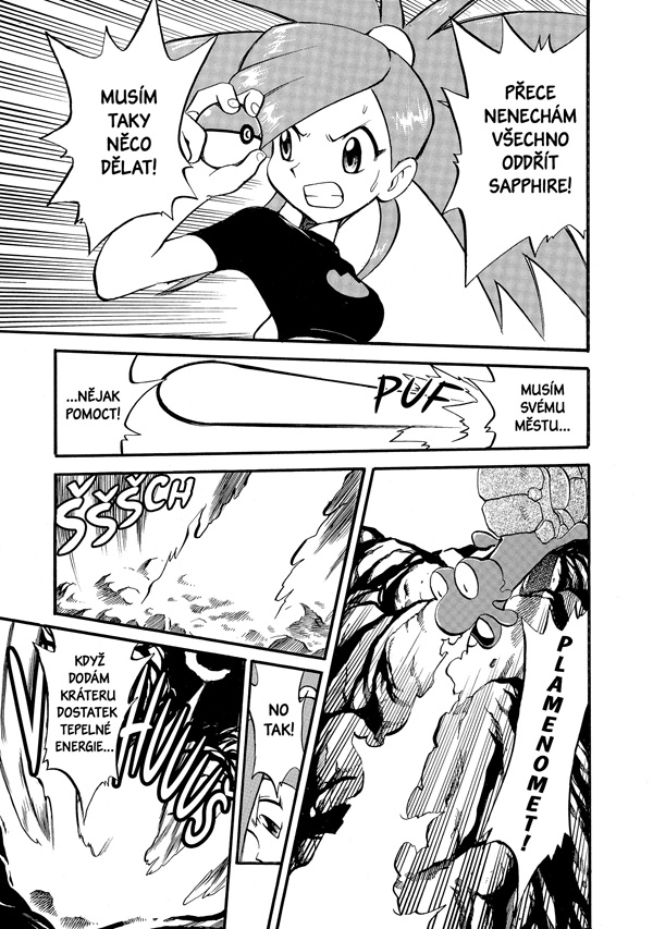 Komínová hora vyhasla! Příroda byla vychýlena z rovnováhy a následky se lavinově šíří po celé oblasti Hoenn. Trenéři stadionů nelení a svolávají krizovou schůzi, aby se domluvili na dalších krocích. Bude ale natolik různorodá skupina schopna dojít ke společnému rozhodnutí? A co zatím dělají Ruby a Sapphire?