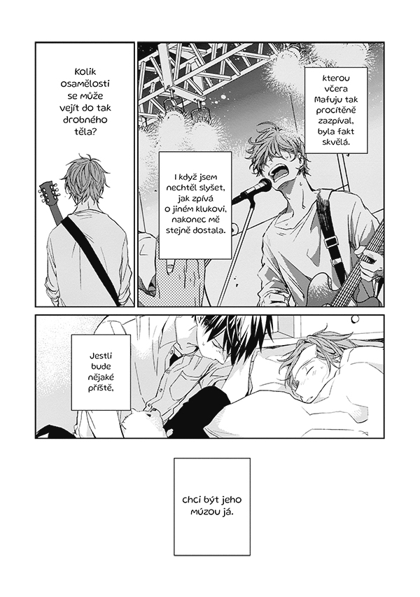 Uenojamu tíží špatné svědomí po tom, co na prvním živáku spontánně políbil Mafujua. Ani se mu nevyznal a nemá ponětí, jestli k němu Mafuju něco cítí. Zatímco mezi Mafujuem a Uenojamou klíčí nevinná láska, vychází na povrch Harukiho utajované city, které chová k Akihikovi. Jejich nová životní kapitola plná lásky i hudby právě začíná!
