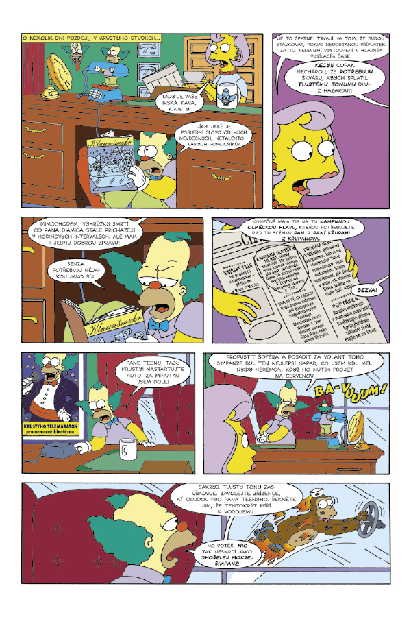 Homer si chce ve sklepě zařídit zašívárnu… jenže místo kulečníku vyfasuje nakonec domů Šášu Krustyho, který se jim nejen utáboří na pohovce, ale obsadí celou rodinu Simpsonových do rolí jeho poskoků.
