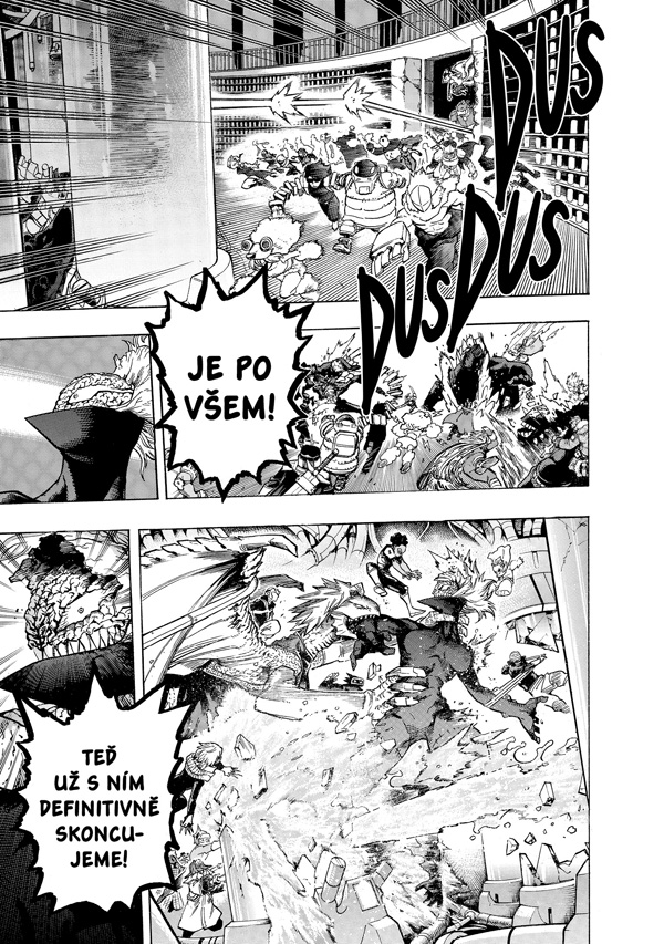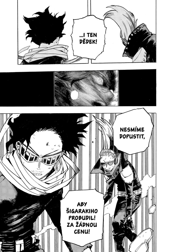 Souběžný útok superhrdinů na obě základny padouchů je v plném proudu, ale ne vše se vyvíjí podle plánu. Horskou vilu se sice podařilo obklíčit, ale Hawks jen o vlásek unikl smrti rukou Dabiho. Mirko mezitím v nemocnici svádí nerovný boj s přesilou Nejvyšších Nómu, kteří jí brání dostat se ke spícímu Šigarakimu. V sázce je mnohé – jeho probuzení by svět uvrhlo do noční můry, jakou už kdysi jednou zažil!