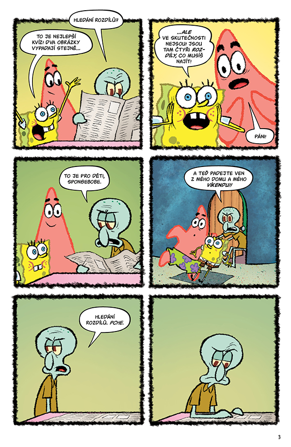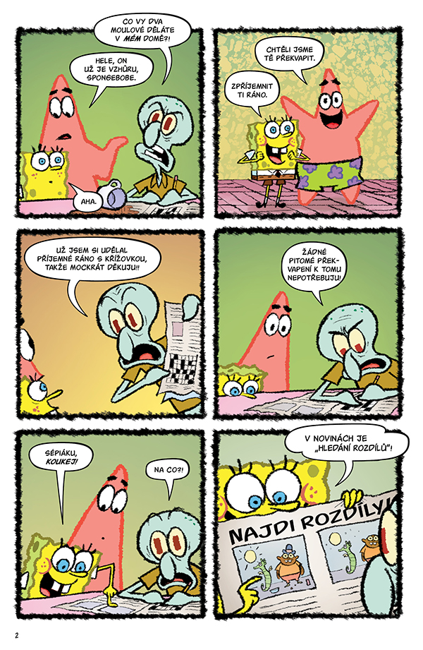 Tentokrát sami přiložíte ruku k dílu, abyste pomohli Sépiákovi hledat rozdíly, mladému detektivu SpongeBobovi vyřešit velkou dortovou loupež a Patrikovi sestavit rozházený komiks! Můžete kreslit a vyzkoušet si, jak pevné máte nervy, nebo rozhodovat, jak se vyvine dobrodružství noční sousedské hlídky!