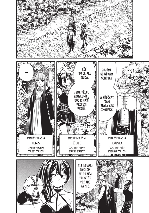 Frieren se svou družinou po dlouhém putování konečně dorazila do magického města Äußerst, kde se spolu s Fern chystá podstoupit kouzelnické zkoušky první třídy. Aby mohli pokračovat ve své cestě na sever, musí alespoň jedna z nich uspět v tvrdé konkurenci těch nejlepších kouzelníků z celého kontinentu. Brzy se ukazuje, že to nebude žádný med. Nejen, že účastníkům zkoušek jde doslova o život, ale vyžaduje se po nich i to, v čem je velká část kouzelníků zoufale neschopná – vzájemná spolupráce.