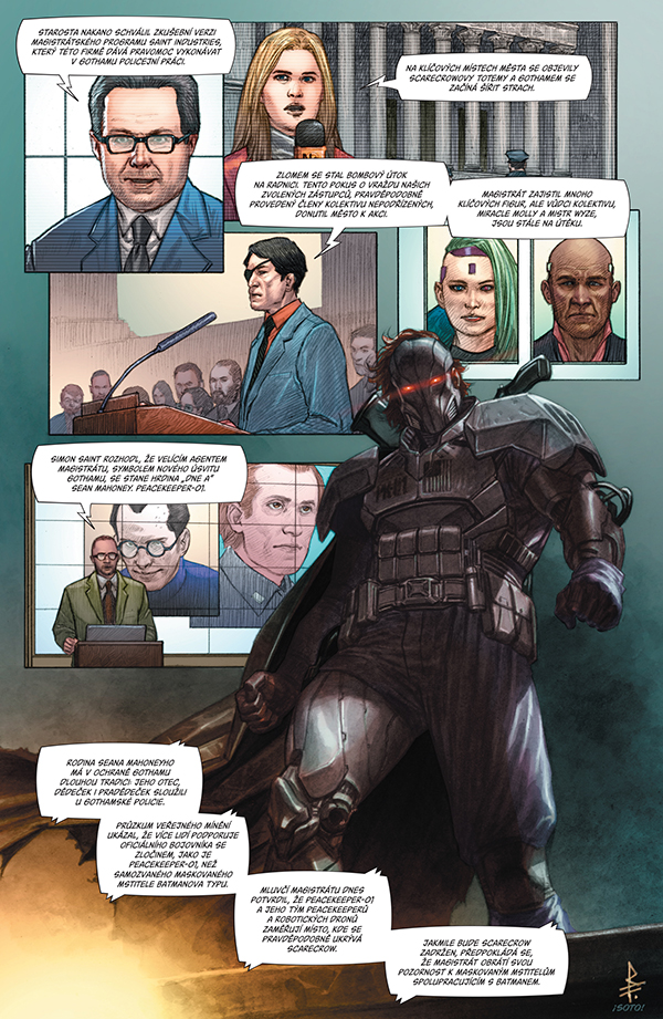 Vinou Scarecrowových machinací se Gotham potácí na samém okraji sebezničení a hrozba vůči Batmanovi a jeho spojencům je vyšší, než kdy dřív! Simon Saint a jeho vojenská organizace Magistrát, která nyní se starostovou podporou bdí nad dodržováním zákonů v Gothamu, označili Batmana za veřejného nepřítele číslo jedna! V napínavém závodě s časem musí Batman zastavit Magistrát i Scarecrowa dřív, než se Gotham totálně zhroutí!