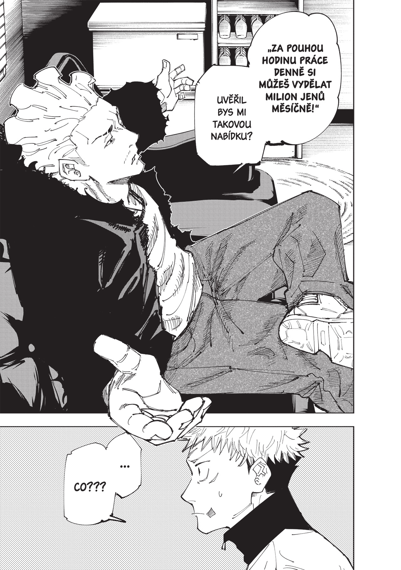 Itadori s Fušigurem se ve snaze o zvýšení svých šancí na zastavení smrtící Očistné řeže rozhodli požádat o pomoc Kindžiho Hakariho, dočasně vyloučeného studenta třetího ročníku. Ten je však zaneprázdněný něčím zcela jiným – provozováním tajného klubu rváčů! Aby si získal jeho pozornost, přihlásí se Itadori do ilegálních soubojů. Fušiguro se mezitím pokouší proplížit přímo k Hakarimu, ale do cesty se mu staví nečekaná překážka. Hakari má totiž k ruce i jednoho ze svých bývalých spolužáků...