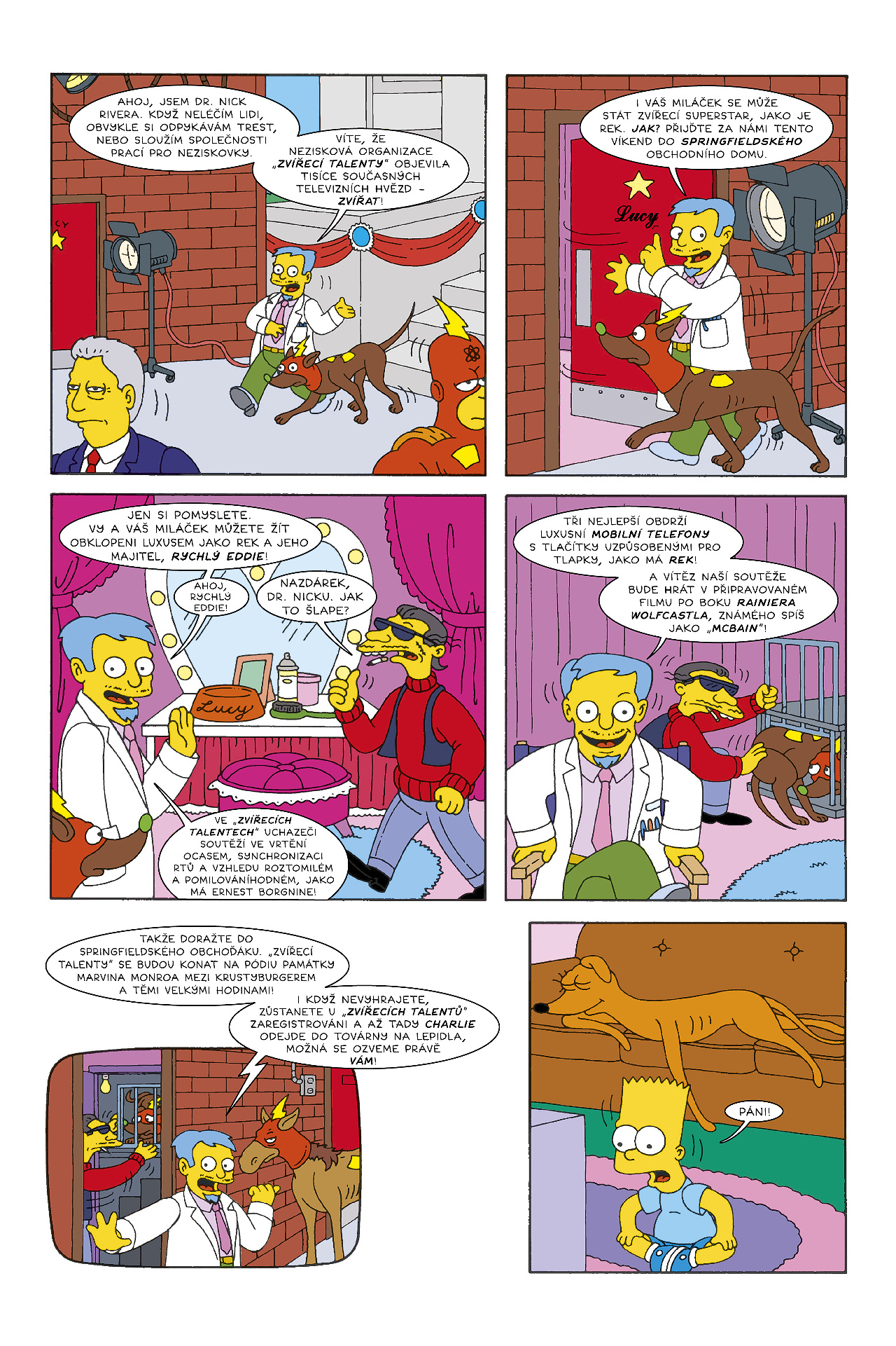 Tento díl bude pod psa! Nebo spíš pro psa. Hlavním hrdinou tu totiž nebude Bart, Líza ani Homer, dokonce ani Marge či Maggie – bude to rodinný pes Spasitel! Z toho se stane hvězda televizních reklam a začne být obletovaný agenty. Ale jaký má význam mít spoustu kostí, když vám nemá kdo házet míček?