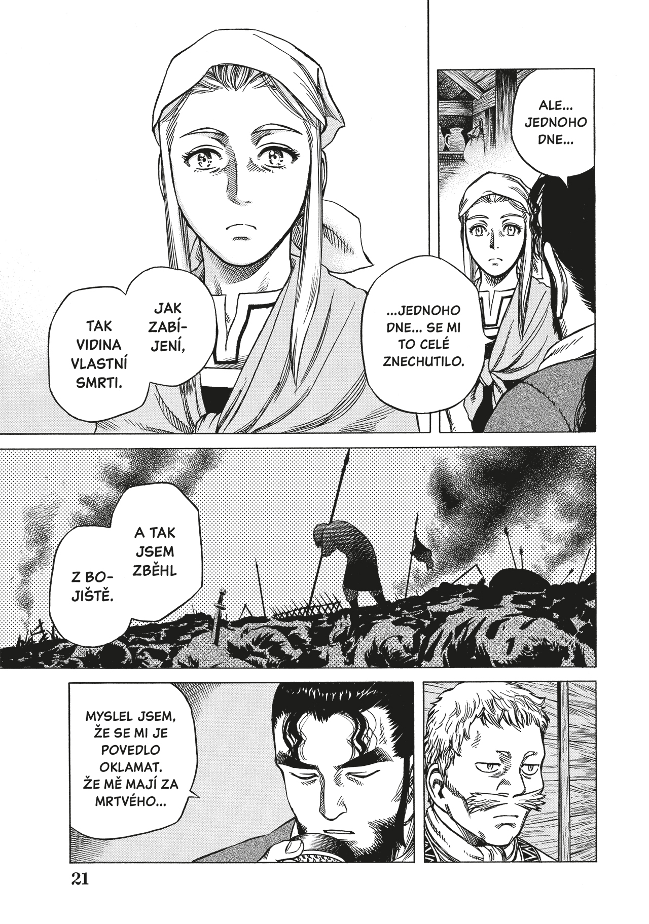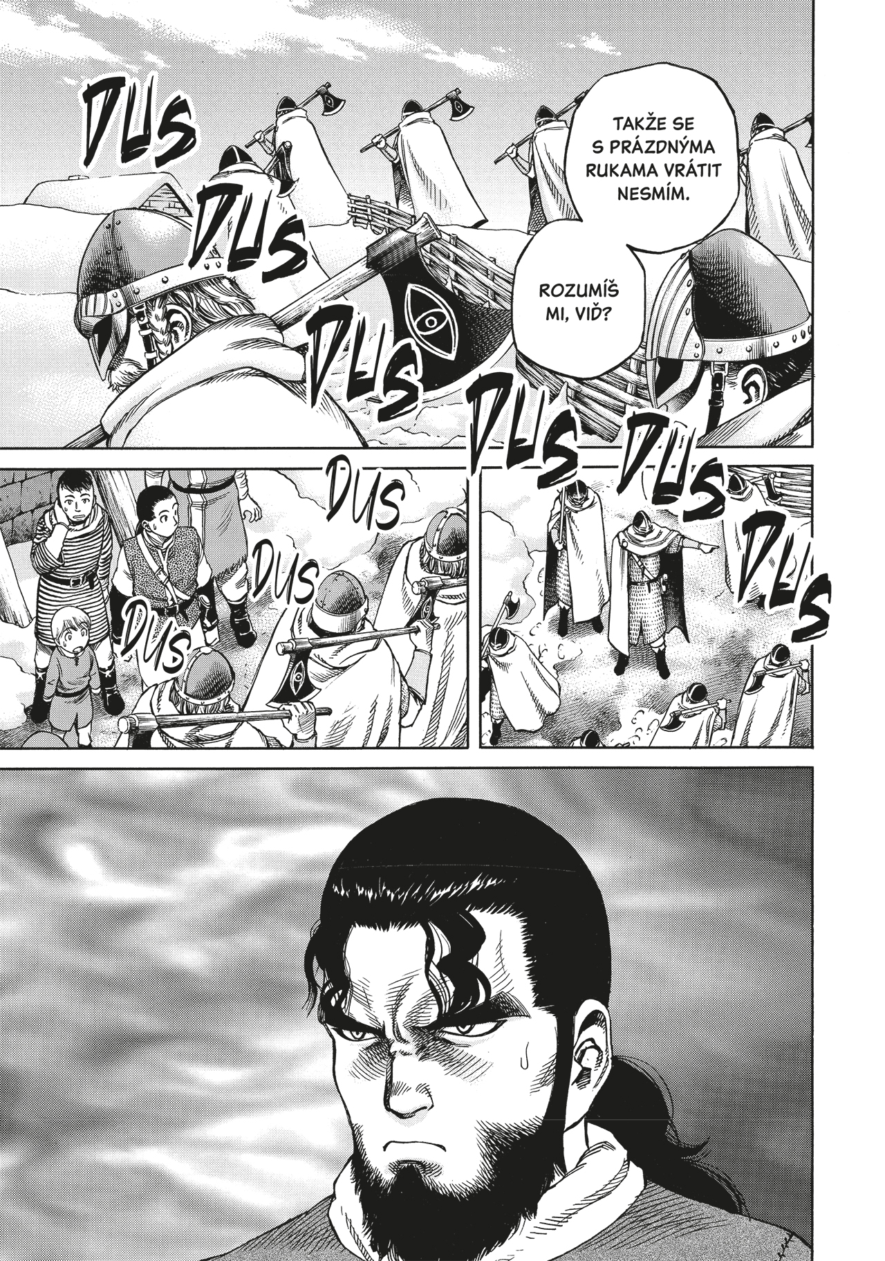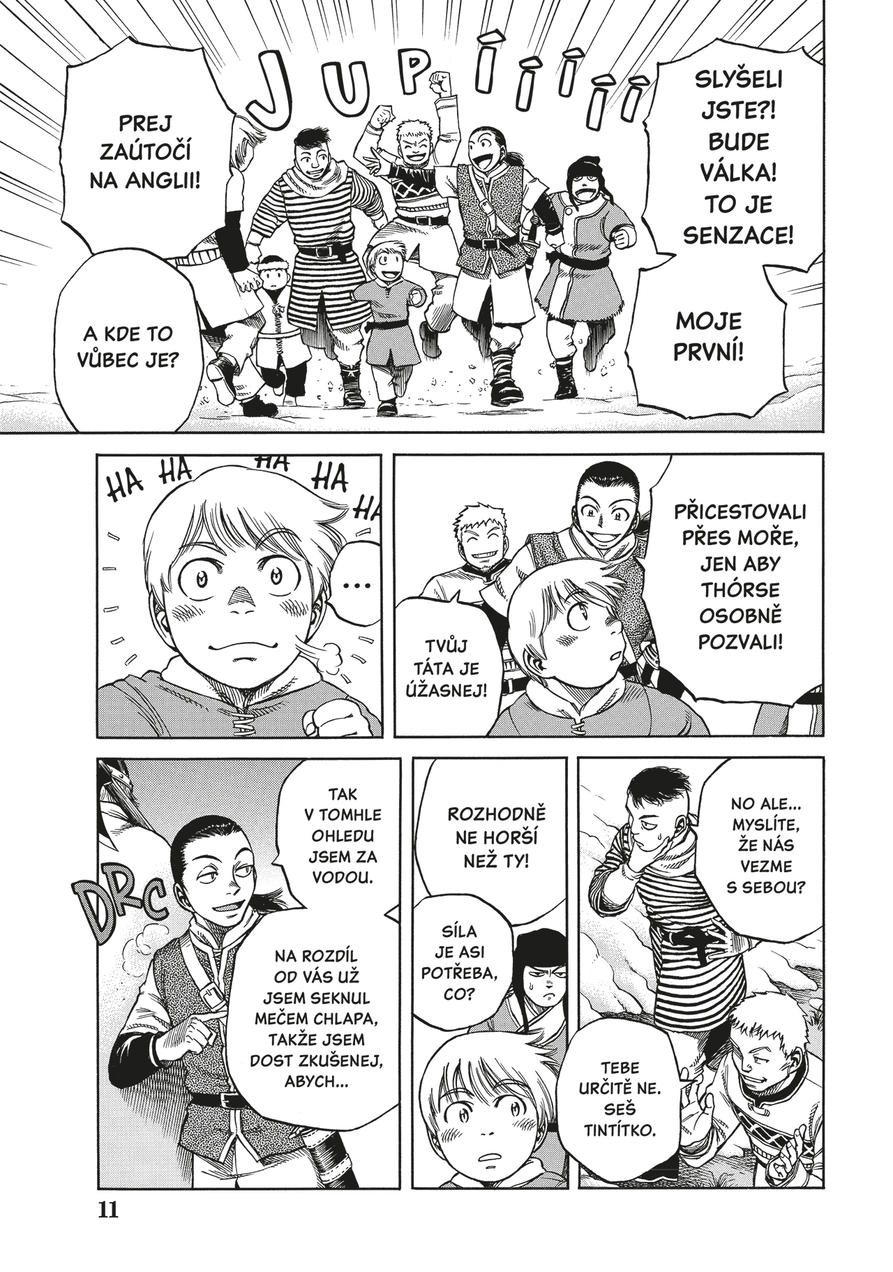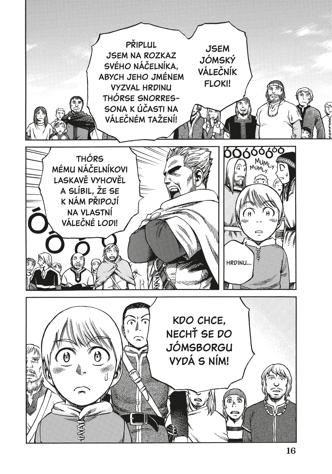 Do islandské vesničky, kde žije malý Thorfinn, dorazila obrovská válečná lod. Muži, kteří si říkají Jómští válečníci, znají Thorfinnova otce jako nemilosrdného bojovníka a chtějí po něm, aby se po jejich boku zúčastnil války, která právě začíná na území Anglie. Nad rodinou, jež si doposud žila v klidu a míru, se stahuje zlověstný stín. Proč vlastně přišel Thorfinnův otec o život? A jak to, že Thorfinn slouží na lodi jeho vraha? Tajemství chlapcovy minulosti je odhaleno…
