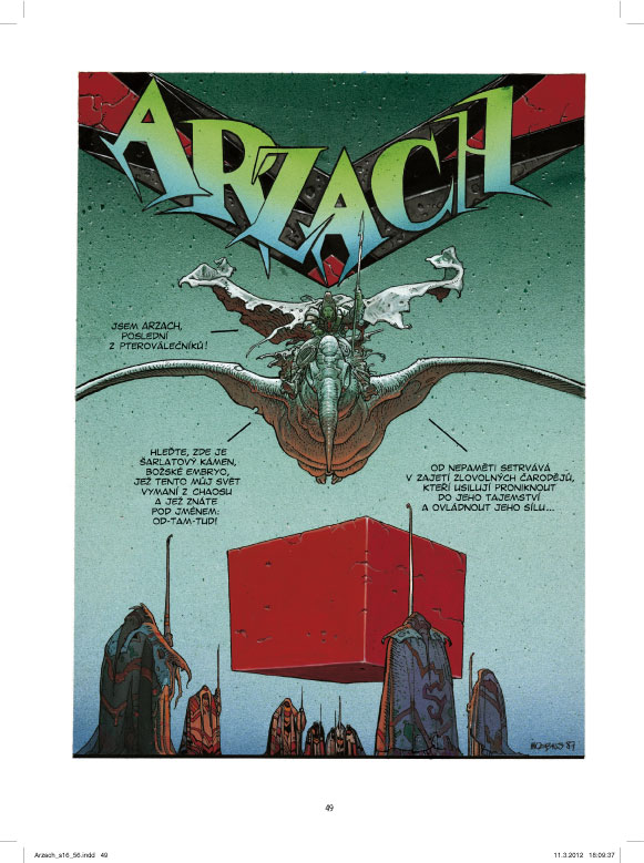 Moebius. Jedna z největších ikon světového komiksu. Kreslíř i scénárista, jehož nedávný odchod byl tragédií pro celý komiksový vesmír. Známe ho už z Incala, ale Arzach je jeho nejosobnější a nejslavnější dílo - fantastický komiks, který ovlivnil celý svět. Dílo, které svým stylem inspirovalo komiksové i nekomiksové tvůrce – od Federika Felliniho, Ridleyho Scotta, Hayao Miyazakiho až po našeho Káju Saudka. A to se v něm Moebius obešel téměř beze slov.