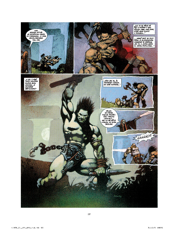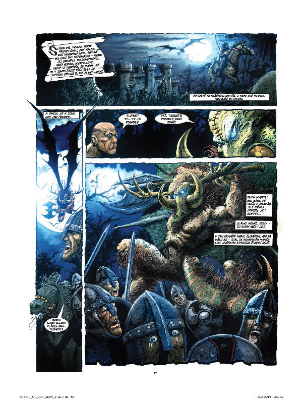 Legendární irský autor Pat Mills Sláinem přináší fascinující odpověď na conanovského barbara. V jeho příbězích se mísí historické detaily se starými legendami a anarchistickými postoji autora. K ruce mu je jako vždy výkvět kreslířů: Greg Staples, Dermot Power a Clint Langley. S nimi stvořil Pat Mills opravdu mistrovské dílo evropského komiksu.