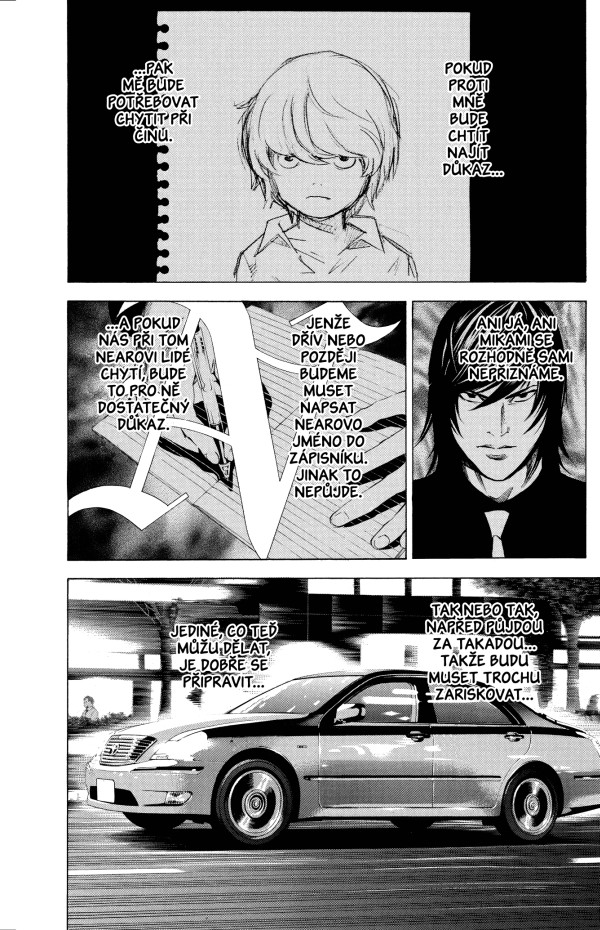 Boj mezi Kirou a jeho odpůrci se pomalu, ale jistě blíží vyvrcholení. Smyčka se stahuje, štáb SPK míří do Japonska a semínko nedůvěry začíná klíčit i v řadách japonské policie. Podaří se Lightovi zbavit svých nepřátel - i nepohodlných spojenců? A co si počne s žárlivou Misou Amane? Ne nadarmo se říká, že zhrzená žena je horší pekla...