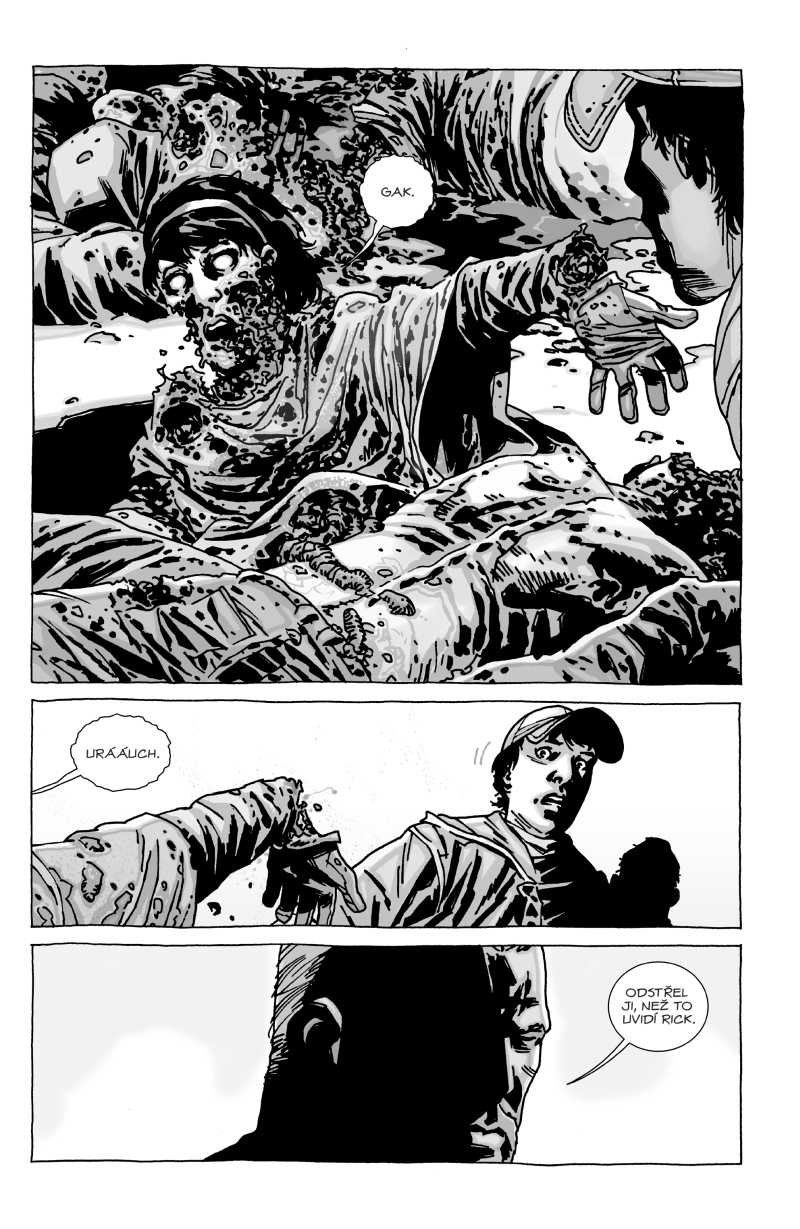 Osada se vypořádala s útokem obrovské hordy nemrtvých, ale následky přetrvávají. Mnozí jsou mrtví, Carl leží v kómatu, ve starousedlících vře nespokojenost s "novým vedením"... Rick a ostatní přeživší se pokouší posbírat střípky svých životů, pokračovat dál a upřít zrak k budoucnosti, která snad skrývá naději.