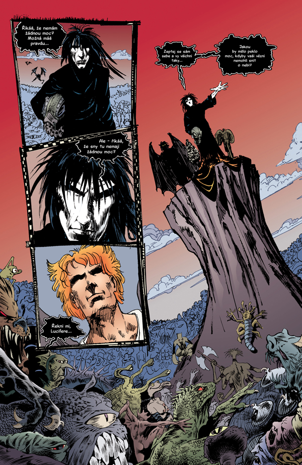 Račte dále do říše snů. S Morfeem odhalíte půvab bratrovraždy, navštívíte peklo i Arkhamův ústav a stanete se svědky masakru v jednom nonstopu. Poznáte démony, mágy, okultisty i šílence, stovky let starou žebračku i Smrt se slabostí pro Mary Poppinsovou.
