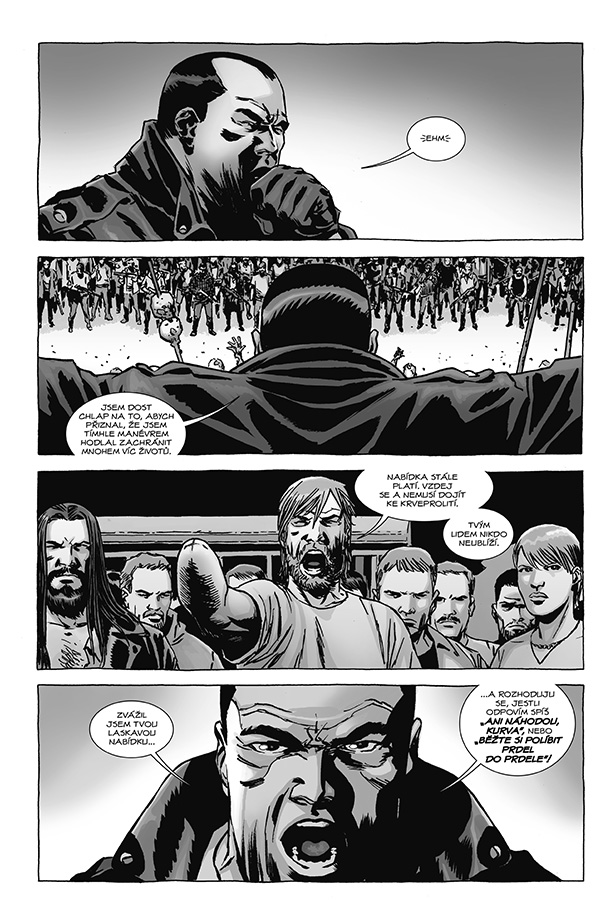 Je to tady - největší a nejepičtější příběh v historii Živých mrtvých! Kostky byly vrženy, Rick se dopustil osudové chyby a Negan zjistil, proti čemu stojí. Rozjíždí se válka, živí se vybíjejí navzájem a mrtví se jim v duchu smějí!