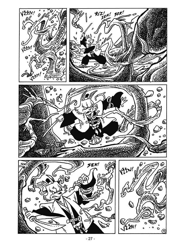 Králičí ronin musí čelit nemrtvým, když zdánlivě neškodné, ale přesto velmi silné kouzlo přivede zrazenou armádu zpátky k životu! Proti Usagimu stojí stovky zombií, ale i zlý kouzelník! Objeví se také oblíbený bojovník s démony Sasuké... a mnoho jiných povědomých postav v několika dalších krátkých příbězích, včetně Eisnerem oceněného příběhu "Smrt lorda Hikijiho"!