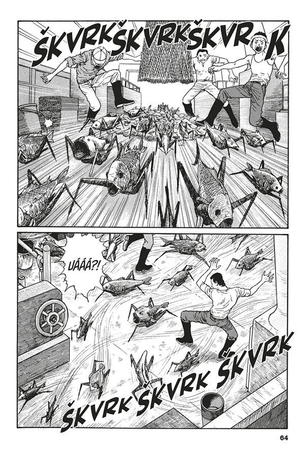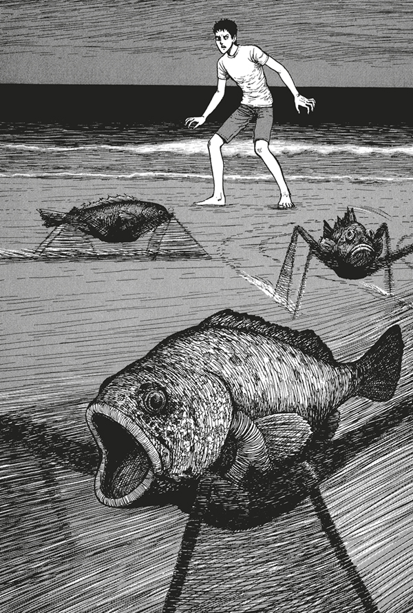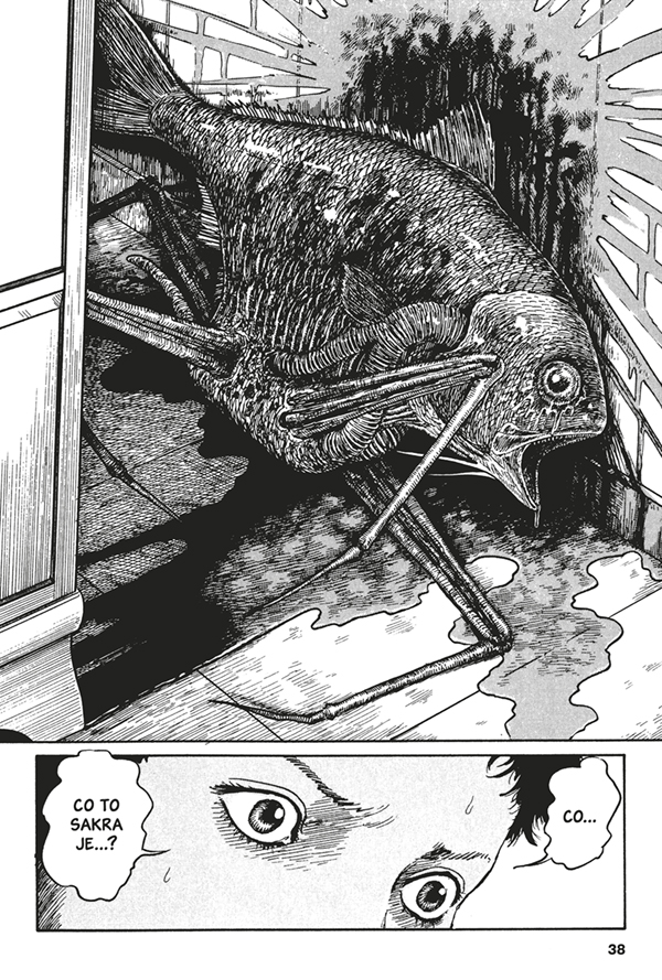 Komiks obsahuje v kompletní podobě jedno z nejslavnějších děl japonského mistra hororu, Džundžiho Ita (Spirála). Je to temný příběh, ve kterém se střetává Lovecraft s Clivem Barkerem. Pokud Čelisti donutily lidi, aby se báli chodit do moře, po tomhle komiksu se budete bát chodit i kolem akvária.