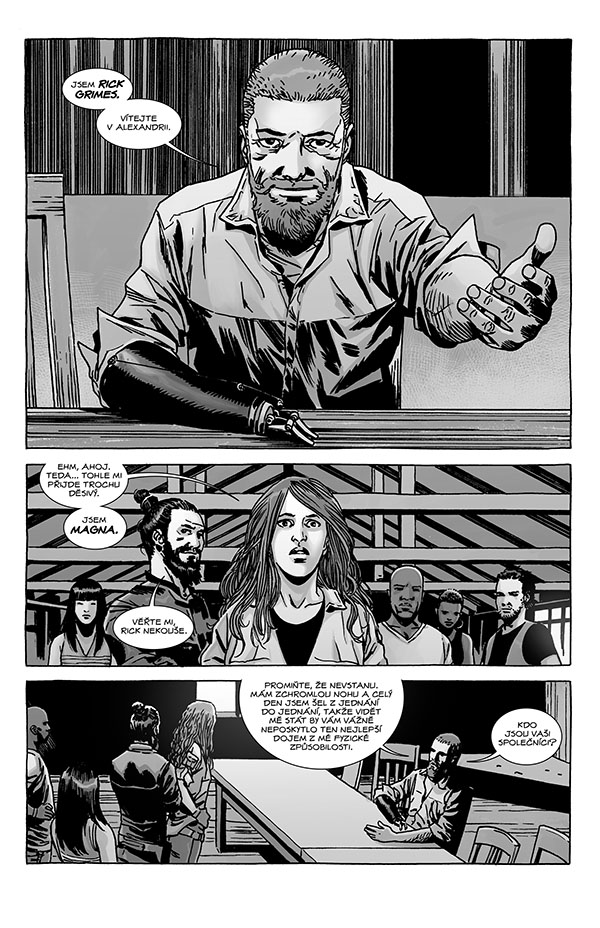 V tuto chvíli do Alexandrie přichází nová skupinka přeživších a z velké části nevěří svým očím.
