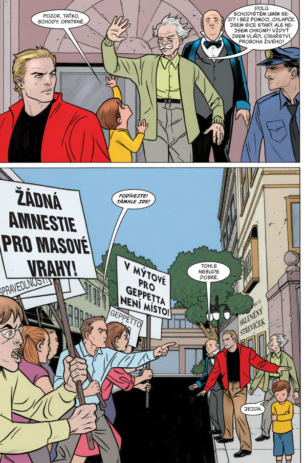 Pinocchio dostal za úkol provést jednu důležitou osobu po městě... a s ním dostanou i čtenáři šanci zevrubně se seznámit s Mýtovem. Do děje vstupují i dva místní mizerové, kteří chtějí z poválečné situace vytřískat nějaké peníze – a navíc se objevuje i nová a nebezpečná politická skupina.