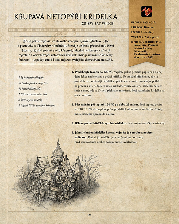 V knize najdete přes 100 receptů, které zvládnou i méně zkušení kuchaři. A samozřejmě i rady, jak ingredience z Azerothu, které u nás přece jen špatně seženete, důstojně nahradit.