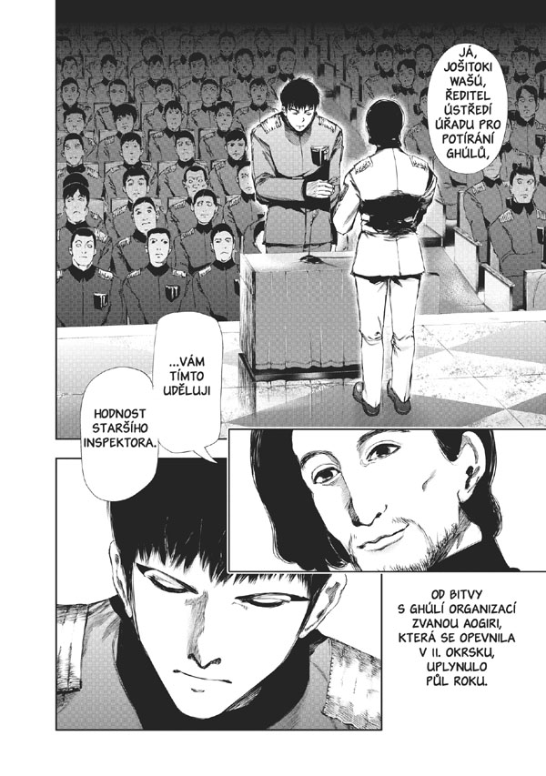 Čas běží a na nikoho nečeká. Od útoku na úkryt Aogiri uběhlo půl roku a hodně se za tu dobu změnilo – především Kaneki, který teď za pomoci Bandžóa a Labužníka pátrá po doktoru Kanóovi. ÚPG však také nezahálí. Řady inspektorů se rozrůstají o nové tváře, a v rámci pátrání úřad naváže spolupráci s někým, kdo jim už v minulosti pomohl, a z koho bude mít Kaneki ještě hodně těžkou hlavu.