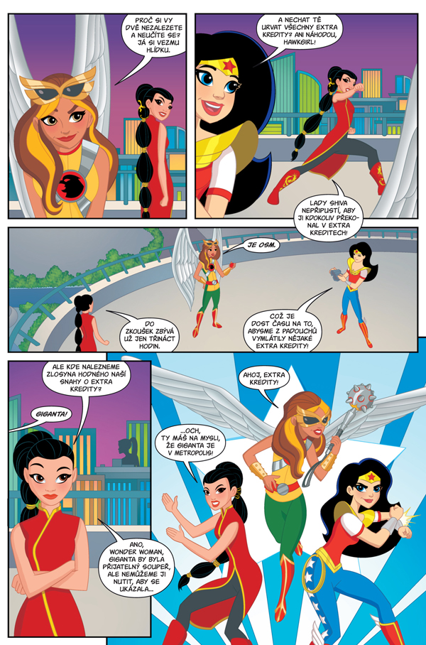 V úplně prvním původním grafickém románu DC Superhrdinek se Supergirl, Bumblebee, Wonder Woman, Batgirl, Harley Quinn, Katana a Poison Ivy zrovna pilně učí, když se jedné po druhé zmocní tajemný zločinec! Podaří se studentkám přelstít jejich věznitele, zachránit Metropolis, a ještě udělat závěrečné zkoušky?