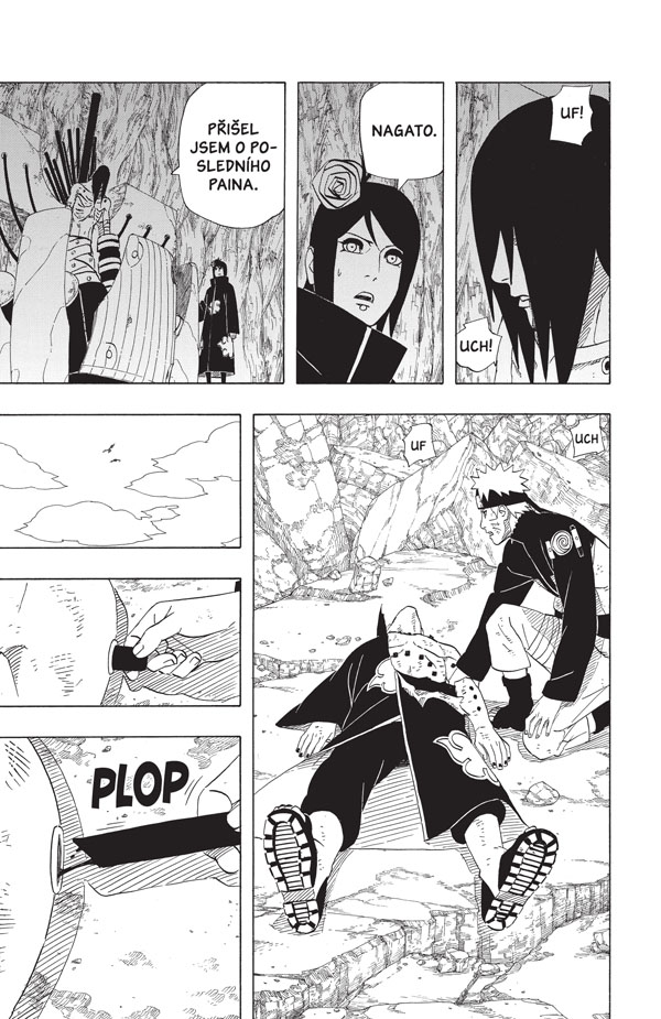 Narutův souboj s Painem mění topologii krajiny a vymazává zbytky Konohy. Když se konečně střetávají tváří v tvář, Naruto zjišťuje, že Painovy pohnutky i minulost jsou mnohem komplikovanější, než tušil. Následky tohoto zjištění i změny ve vedení vesnice jen prohlubují Narutovo odhodlání. Navíc je ve vzduchu stále otázka ohledně osudu Sasukeho.