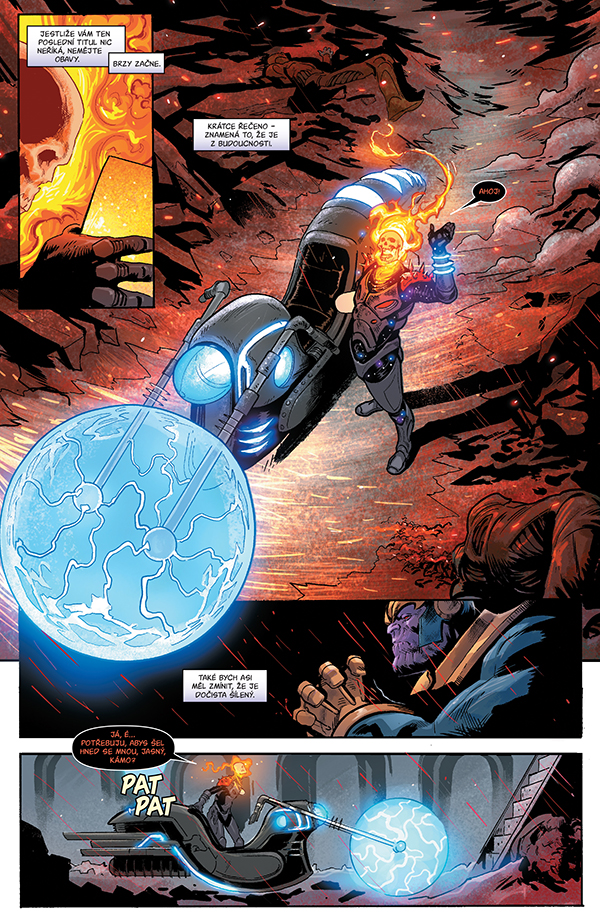 A teď to dokonce vypadá, jako by se ta znepokojivá představa měla stát strašlivou realitou! Přesvědčte se na vlastní oči, co se stane, když Šílený Titán převezme vládu nad osudem! Thanos doputoval na konec času a zakusil moment absolutního vítězství… a stále není spokojený. Buďte svědky okamžiku Thanosovy největší slávy – a jeho nejhlubší hanby! Bez ohledu na to, jakou podobu na sebe Thanosovo vítězství nabere, je tu vůbec někdo – nebo něco –, kdo to může přežít? Vystupuje Silver Surfer a úplně nový kosmický Duch pomsty, Ghost Rider!