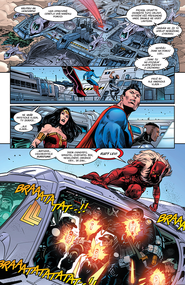 Zničená základna dopadne do Afriky a boj o právo na její trosky vyvolá humanitární krizi. Rudý lev, vládce sužované země, si najal bezskrupulózního padoucha Deathstroka, aby zasáhl v jeho prospěch, a tým superhrdinů je nyní tím jediným, co stojí v cestě masakru...