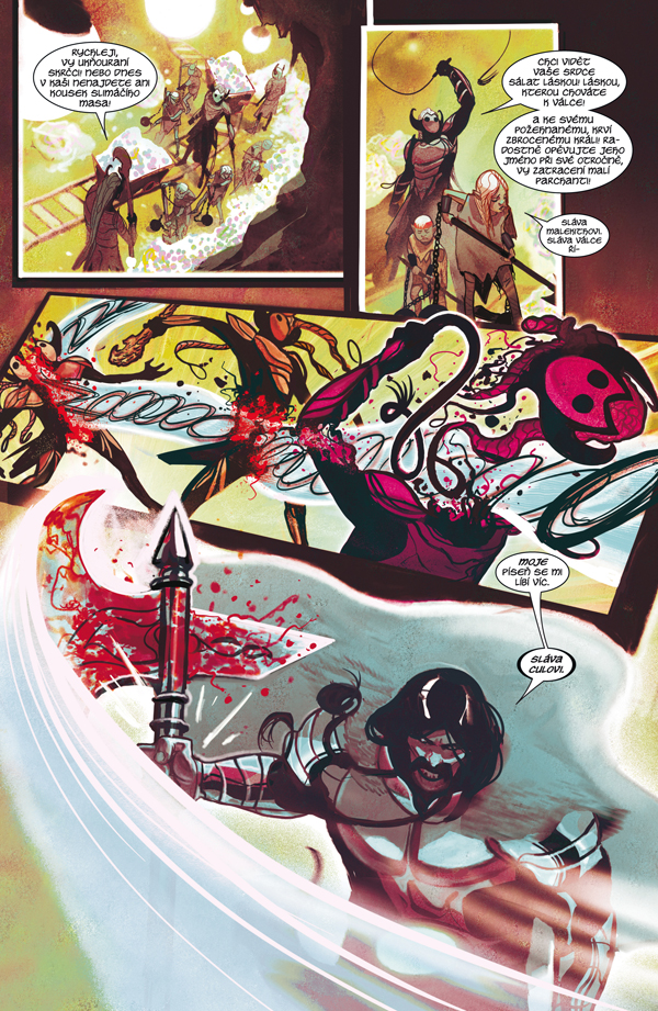 LOKI, JAKO NEMLUVNĚ ADOPTOVANÝ ÓDINEM, NEMĚL NIKDY PŘÍLEŽITOST NAVÁZAT VZTAH SE SVÝM RODNÝM LIDEM – hrůznými ledovými obry. Nyní, v průběhu invaze ledových obrů do New Yorku, stráví Loki nějaký čas se svým drahým starým tatíkem Laufeym! Ale ne tak, jak byste si možná mysleli... Ódin mezitím vyslal svého bratra Cula, boha hrůzy, do hlubin Svartálfheimu na důležitou misi. Podaří se Culovi konečně vykoupit? Thor coby mladý bůh usiloval o legendární kladivo. Nyní se jeho osud konečně naplnil, neboť Válka říší si ho našla i celá staletí v minulosti! Navíc: Co Thorovi zůstalo, když teď válka skončila? Status quo se na začátku konce legendárního působení Jasona Aarona hroutí!