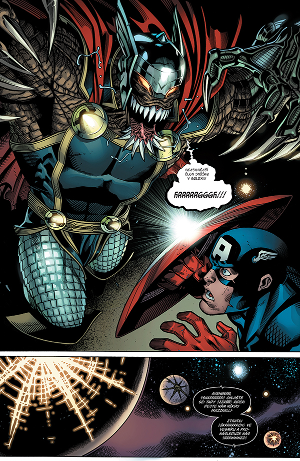 OBSAHUJE SEŠITY AVENGERS (2018) č. 26–30, JEJICHŽ AUTORY JSOU JASON AARON, ED McGUINNESS, DALE KEOWN, ANDREA SORRENTINO, PACO MEDINA, FRANCESCO MANNA, MARK MORALES, JOE WEEMS, CAM SMITH, CRAIG YEUNG, JASON KEITH, ERICK ARCINIEGA A JAY DAVID RAMOS.