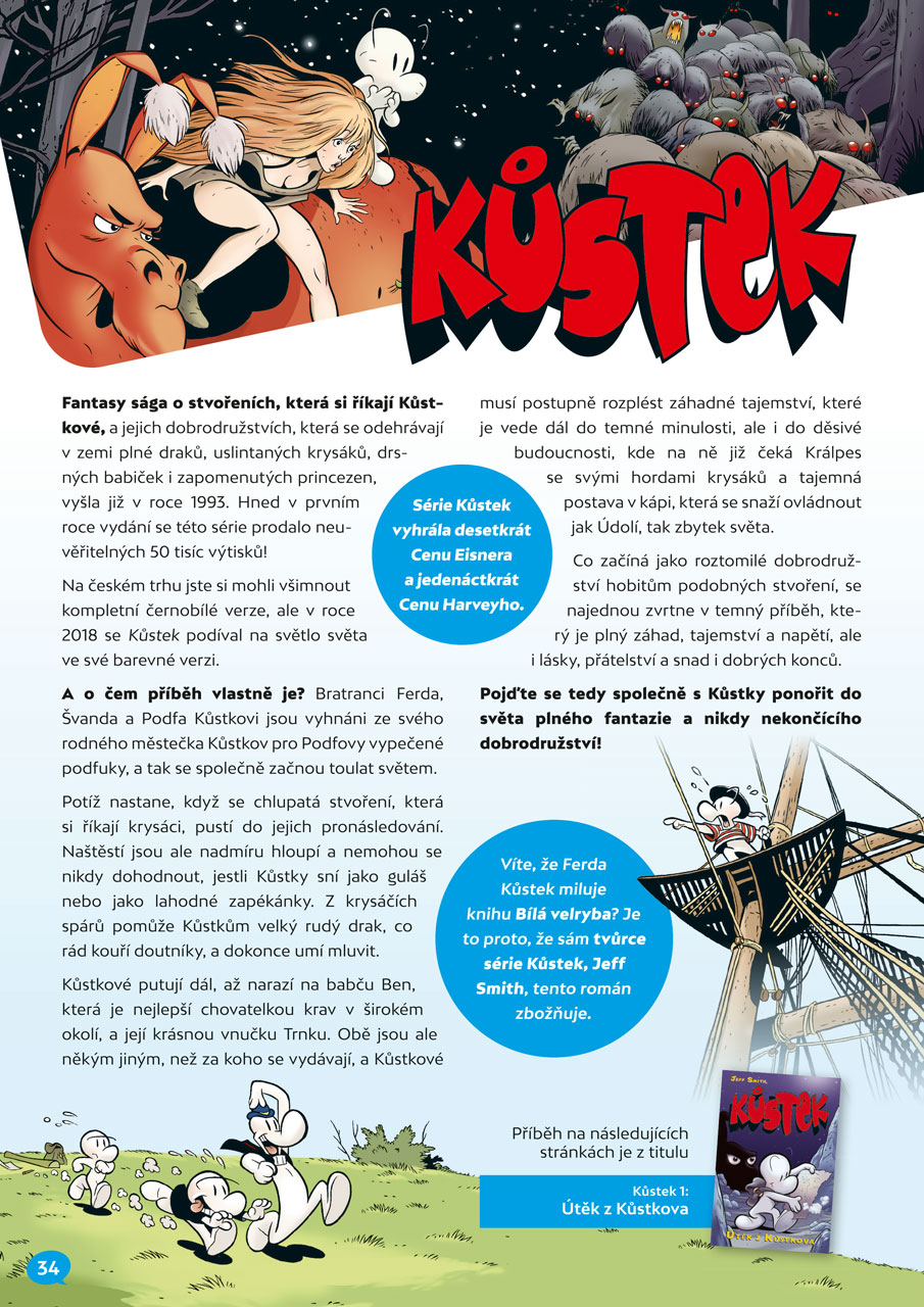 Společně se zasmějeme se žlutými Mimoni, vydáme se na výpravu do fantasy série Kůstek a s dobrodruhem Timem zažijeme nečekané dobrodružství. Na skok se podíváme i do herního světa Minecraft, povíme si, jak se čte stále oblíbenější japonská manga, a vzneseme pár všetečných otázek samotnému Batmanovi! A pro rodiče si Komiksové čtení nachystalo pět rad, jak vychovat malého čtenáře!