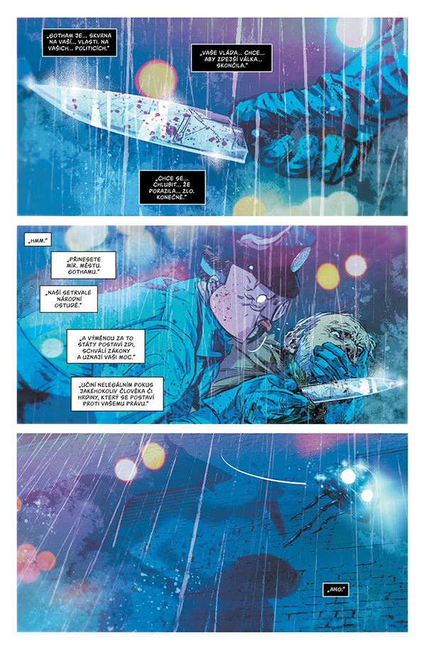 Bane proslul jako padouch, který kdysi zlomil Batmanovi páteř. Nedávno pak zlomil i jeho ducha, a teď, když začalo velké finále Baneovy hry o Gotham a městem se prohánějí jeho pomocníci, není po Batmanovi ani slechu.