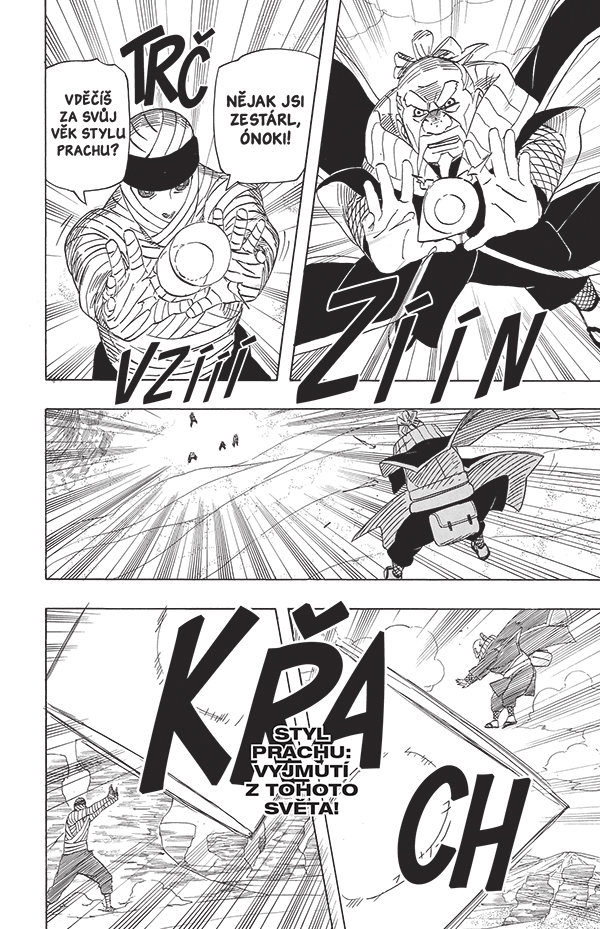 Madara využívá maskovacích schopností bílého Zecua, aby na bojiště vnesl zmatek. Naruto ale dokáže vycítit nepřátelskou čakru, plán prohlédne a vyráží napříč bojištěm přátelům na pomoc. Mezitím se do boje plně zapojují reinkarnace bývalých vůdců vesnic a Gaaru čeká nevyhnutelné – střet s vlastním otcem!