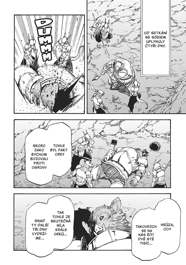 Džurským pralesem otřásla nečekaná zpráva. Král orků, příšera katastrofické třídy, shromáždil armádu čítající na 200 tisíc mužů a zřejmě se chystá zahájit invazi. Rimuru vyslyšel žádost o zdolání krále orků od dryády jménem Treyni pověřené správou nad Džurským pralesem, a proto plánuje uzavřít spojenectví s ještěrci, jenže...
