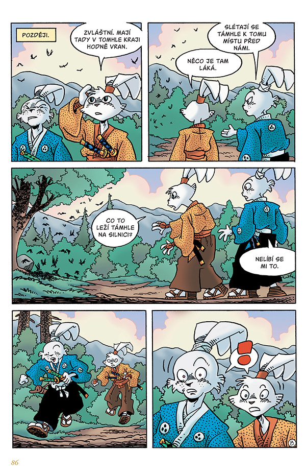 V příběhu „Výkupné“ se setkají s pouliční umělkyní Kitsune a její mladičkou chráněnkou Kiyoko. Když místnímu šéfovi gangsterů zmizí kniha s důležitými informacemi, Usagimu netrvá dlouho přijít na to, kdo by v tom asi tak mohl mít prsty. V příběhu „Křižovatky“ pak naši králičí samurajové narazí na skupinu poutníků, kteří se stali oběťmi přepadení. Usagi a Yukichi se na čas rozdělí, aby ztrestali zlo – narazí však na větší a podivnější komplikace, než čekali...