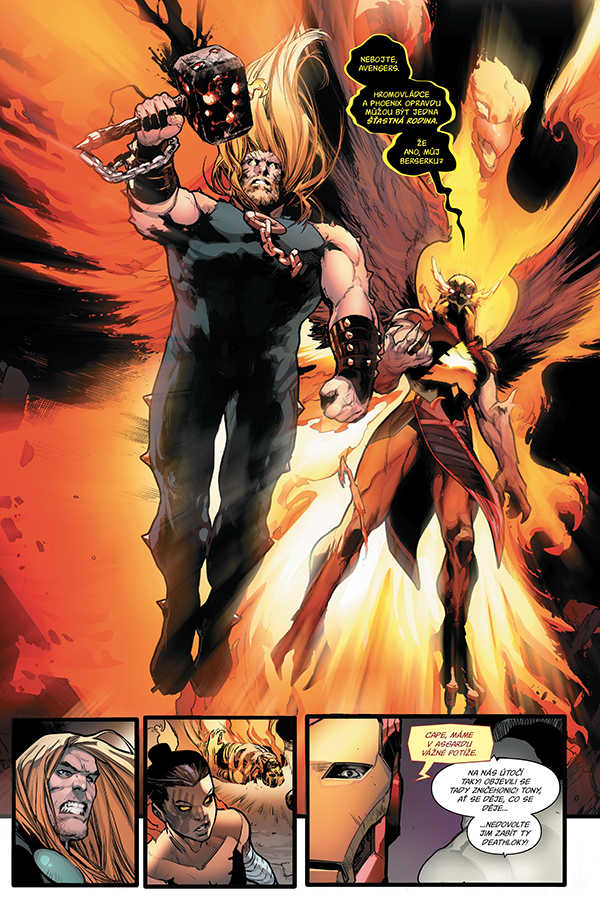 Hluboko v temném srdci mnohovesmíru stojí zářivá strážná věž. Z ní se kybernetičtí vojáci známí jako Deathlokové vydávají řešit smrtící hrozby nespočtu světů. Nyní zamířili na Zemi, aby předali Avengerům děsivé poselství: Black Skull, Ghost Goblin, mladý Thanos, Nejvyšší Doom a další mnohovesmírní Pánové zla přicházejí. Asgard i Hora Avengers jsou pod útokem, a proto se do boje musí zapojit další mocní spojenci. Přivítejte Podmořšťana Namora a Jane Fosterovou alias Valkýru! A… Starbrand? Není ještě moc malá na to, aby se stala Avengerkou? Mezitím – co plánuje Nighthawk a nově zformovaná Hadí společnost? Dokážou se dvě verze Jane Fosterové – Valkýra a Mocná Thor – spojit, aby zachránily svou duši? A jako bonus: odhalení Thorova tajemného původu!