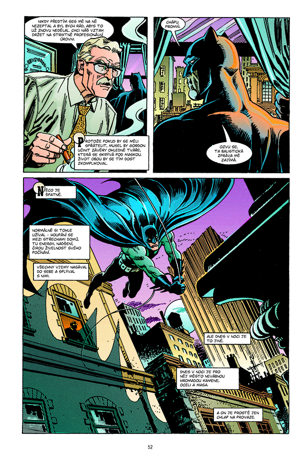 Perfektní. Nemyslím pouze tento první díl řady, ale obecně nápad vydávat Legendy temného rytíře. Projel jsem si na Wikipedii hrubý nástin dějů všech příběhu a musím říct, že nás čeká spousta zajímavých nápadů. Velice oceňuji, že před každým sešitem je reprodukce originální obálky, s datumem, cenovkou atd. Doufám, že to tak zůstane. Dobrá práce, díky.