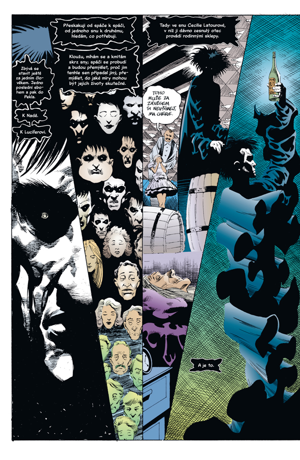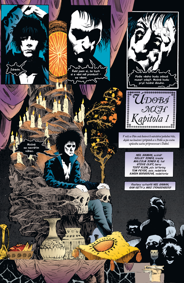 Sandman 1: Preludia a nokturna, Sandman 2: Domeček pro panenky, Sandman 3: Krajina snů, Sandman 4: Údobí mlh, Sandman 5: Hra o tebe a povídky Thermidor, Augustus, Poslední císař Ameriky a Orfeova píseň, které vyšly v knihách Sandman 6: Báje a odlesky I. a Sandman 6: Báje a odlesky II..