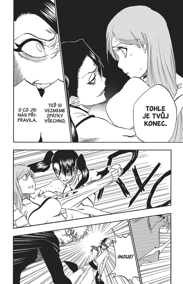 Ičigo se opět utkává s Ulquiorrou! Čeká jej však nerovný boj a bude-li chtít Orihime skutečně zachránit, nevyhne se drastickému řešení...